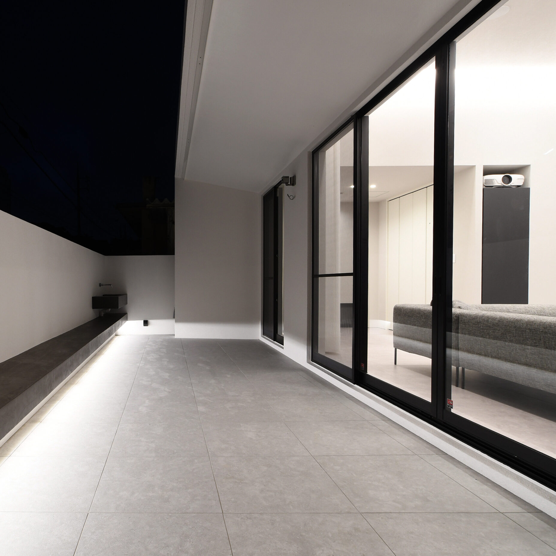 敷地は浦添の閑静な住宅街に位置する。下引き換気扇を採用したアイランドキッチンは家の中心である約3.5の天井高さの空間に鎮座している。ホームシアターも設計段階から組み込まれており、映像・音響にもこだわった住宅となっている。 敷地面積:56坪延床面積:26坪